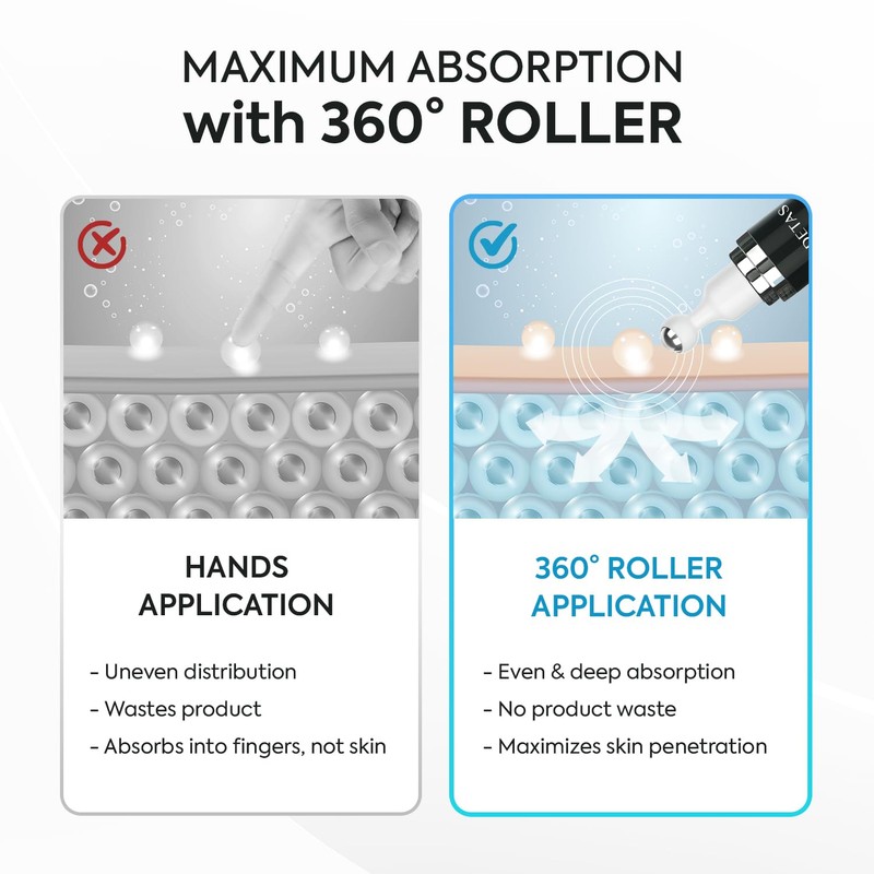 - PRECISION 360 DEGREE ROLLER = NO-MESS TARGETING – Our applicator dispenses the perfect dose while micro-massaging actives deep into pores. Your go-to dark spot remover for hands, best dark spot remover for legs and on-the-go touch-ups wherever spots appear.