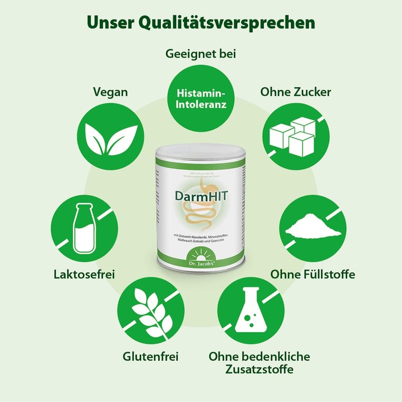 DarmHIT by Dr. Jacob's I 210 g Powder Tin Vegan I Dietary Supplement for Normal Digestion ¹ I Suitable for Histamine Intolerance (HIT) I 84 Servings