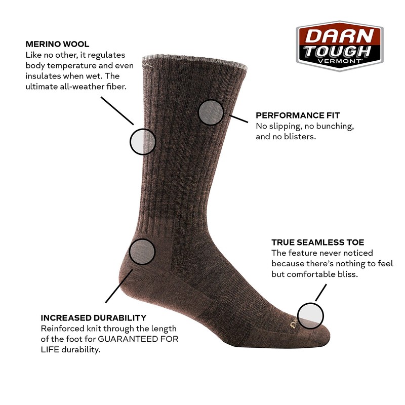 - Guaranteed For Life - If these socks wear, tear, or develop holes, Darn Tough will replace them. No strings. No conditions.