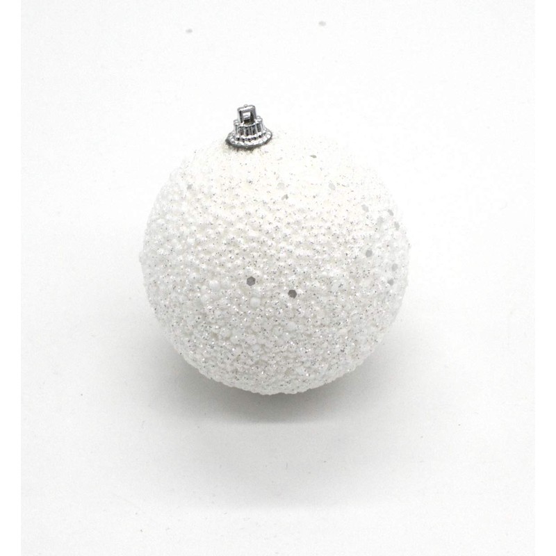 - These beautiful baubles are made of polystyrene and decorated with silver glitter.