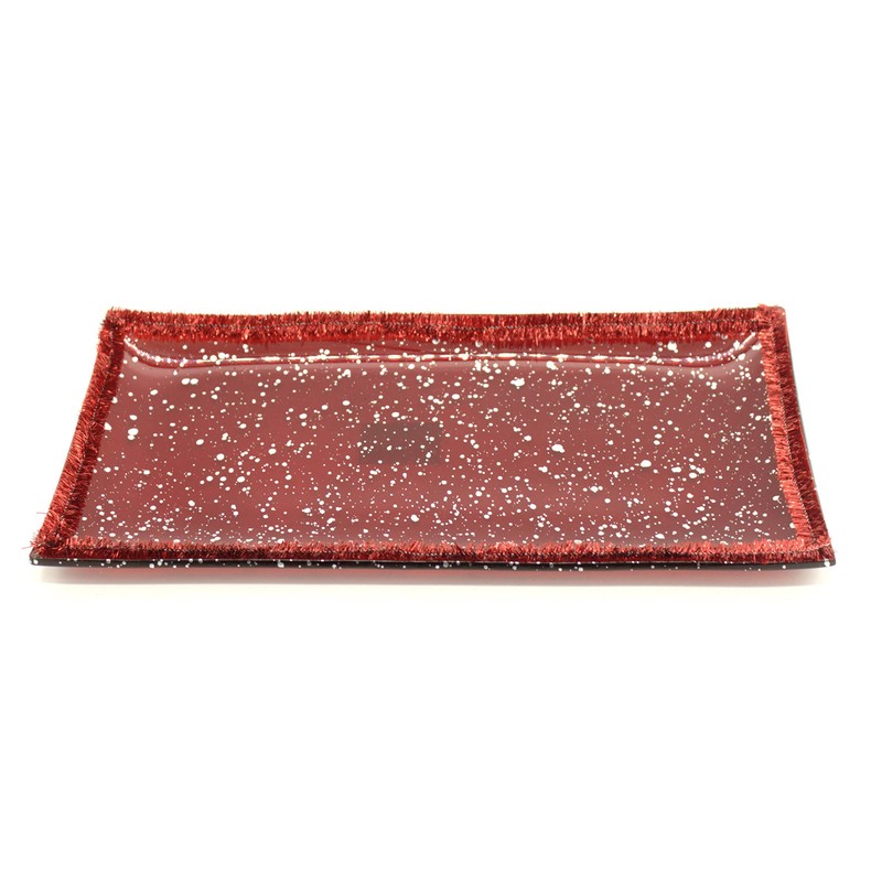DARO DEKO Christmas Glass Plate L 26 x 13 cm Red + Red Edge – 1 Piece