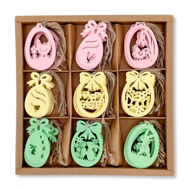 DARO DEKO Wooden Decorative Hanger 5 x 7 cm Easter Mix Pack of 54 Easter Decoration Easter Bunny Easter Egg