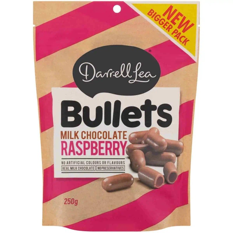 Darrell Lea Raspberry Chocolate Liquorice Bullets 250g Bulk Buy.