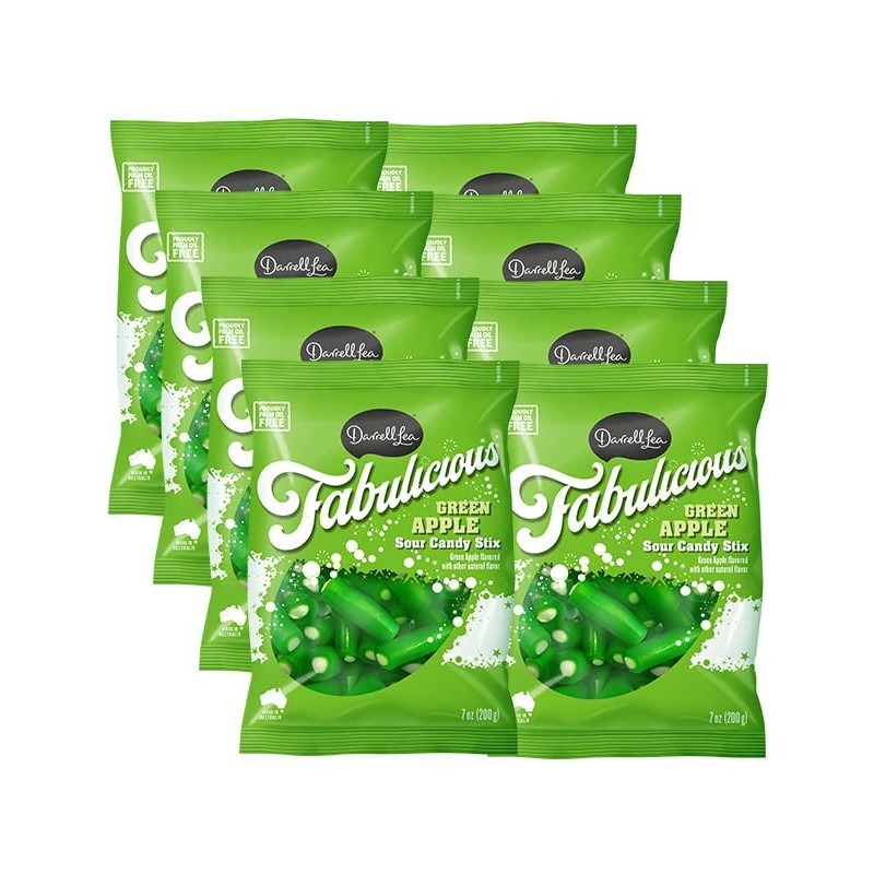 Darrell Lea Fabulicious Green Apple Sour Candy Stix, 7 Ounce (Pack of 8) | Soft and Tangy, No Artificial Flavors, Palm Oil Free, Made in Australia, Shareable