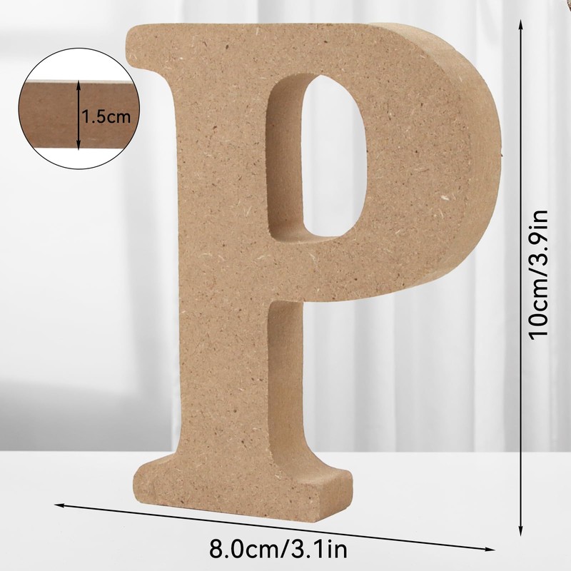 Darryy 10 cm Standing Wooden Letters, Log Natural Large Wooden Letters for Crafts, Untreated Wooden Decorations for Home, Wall, Party, Decoration, DIY Projects (P)