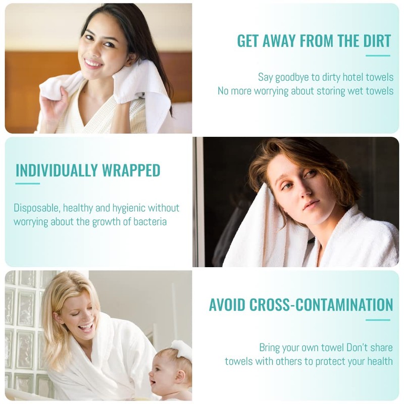 - 3. Easy to carry: each bath towel and towel is individually packed and the size of a round cake with a diameter of 7.5 cm, which can be put in a bag for easy carrying