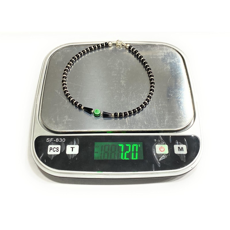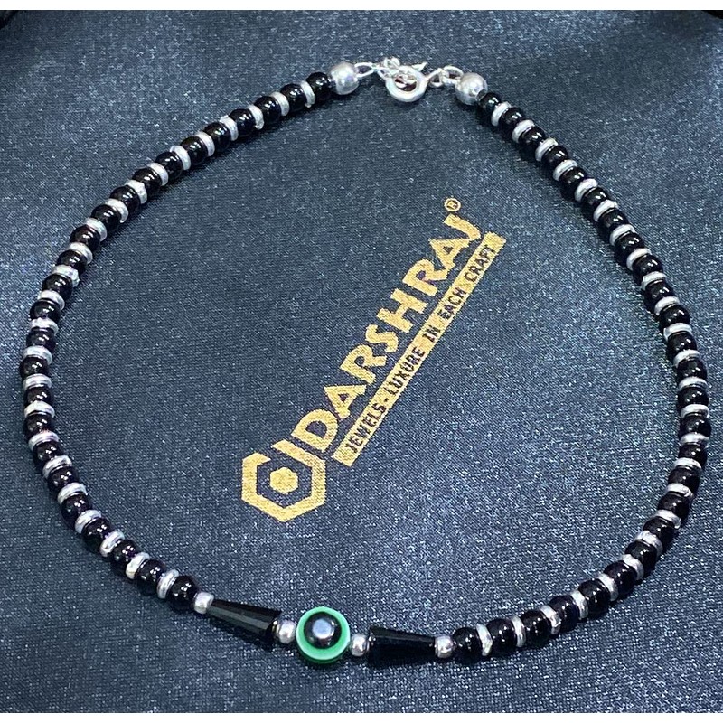 DARSHRAJ Jewellers Anklet 925 Sterling Silver Green Evil Eye & Black Beads Anklet - 10.5 Inches Standard Size With Adjuster Free Size Weight 8 Gms (Pack Of 1)