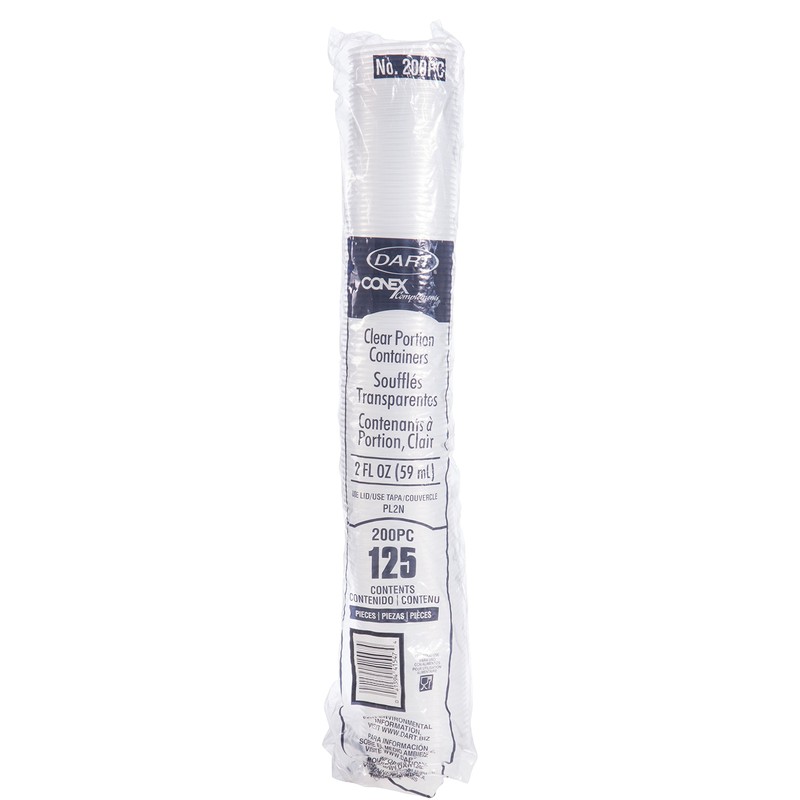 Conex Complements Polypropylene Containers, 200PC, 2.0 oz, 2500 pieces, are high-quality plastic portion containers made to meet your business needs! Conex Complements are versatile products created from sturdy polypropylene to be used as a soufflé cup, condiments container, medicine cup, and much more. These containers are accompanied by leak resistant lids that snap to fit when stacking. Restaurants often use Conex Complements for sauces or dressings in a convenient, to-go portion container while health care systems take advantage of Conex Complements for pill cups that are sanitary and disposable. Dart Container offers Conex Complements Polypropylene Containers along with thousands of high-quality foodservice packaging solutions.