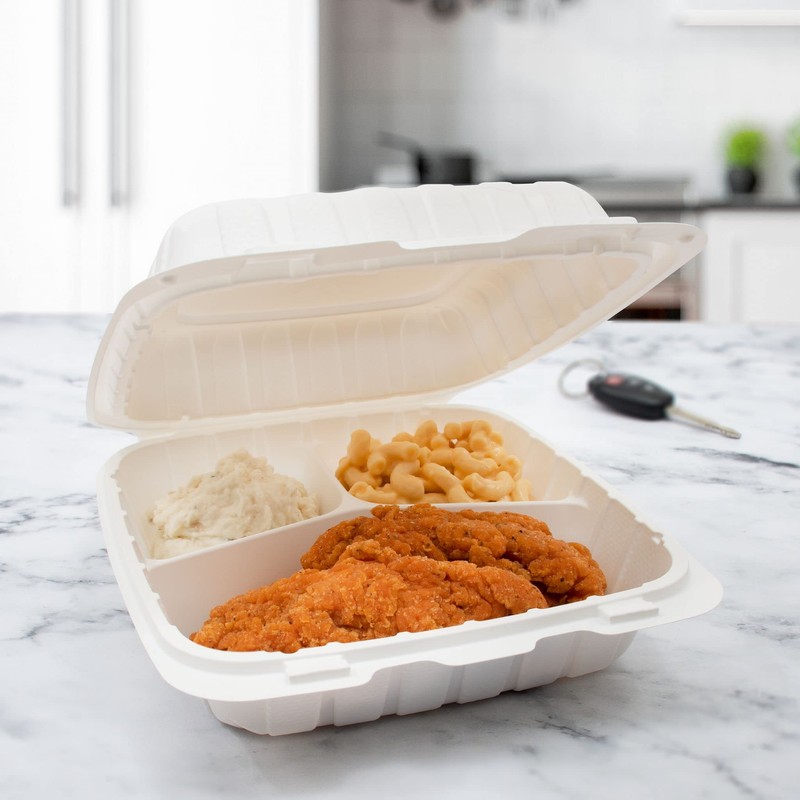 DART ProPlanet Mineral-Filled Eco-Friendly Hinged Lid Take-Out Containers, 9" Size, 3-Compartment, 150ct Total, 90MFPPHT3R