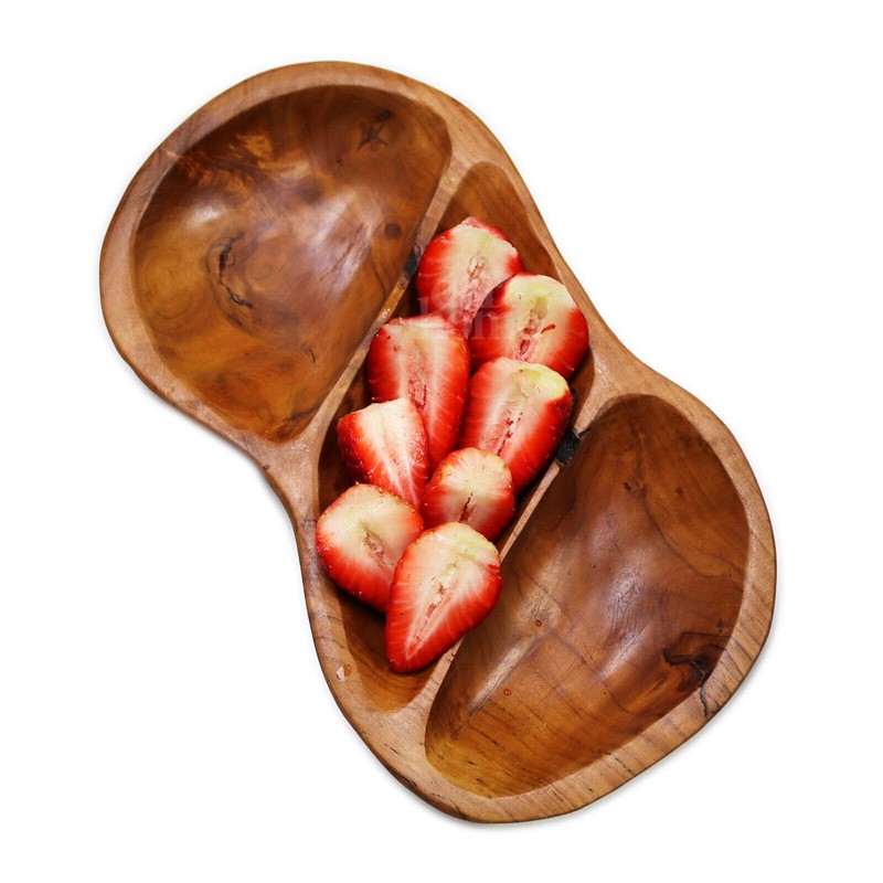 Darthome Teak Root Antipasti Platter Hand Carved Rustic Wood Oval 3 Section Serving Bowl