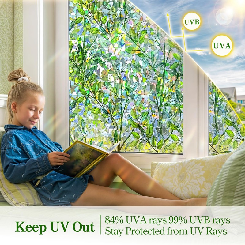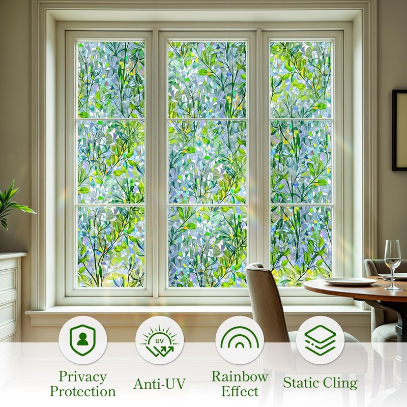 - Captivating Rainbow Effect: When sunlight touches this stained glass window film, it produces a beautiful rainbow effect. The delicate leaf patterns seem to come alive, infusing your space with vibrant colors and an elegant, artistic ambiance.