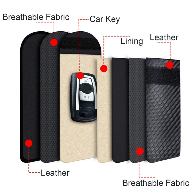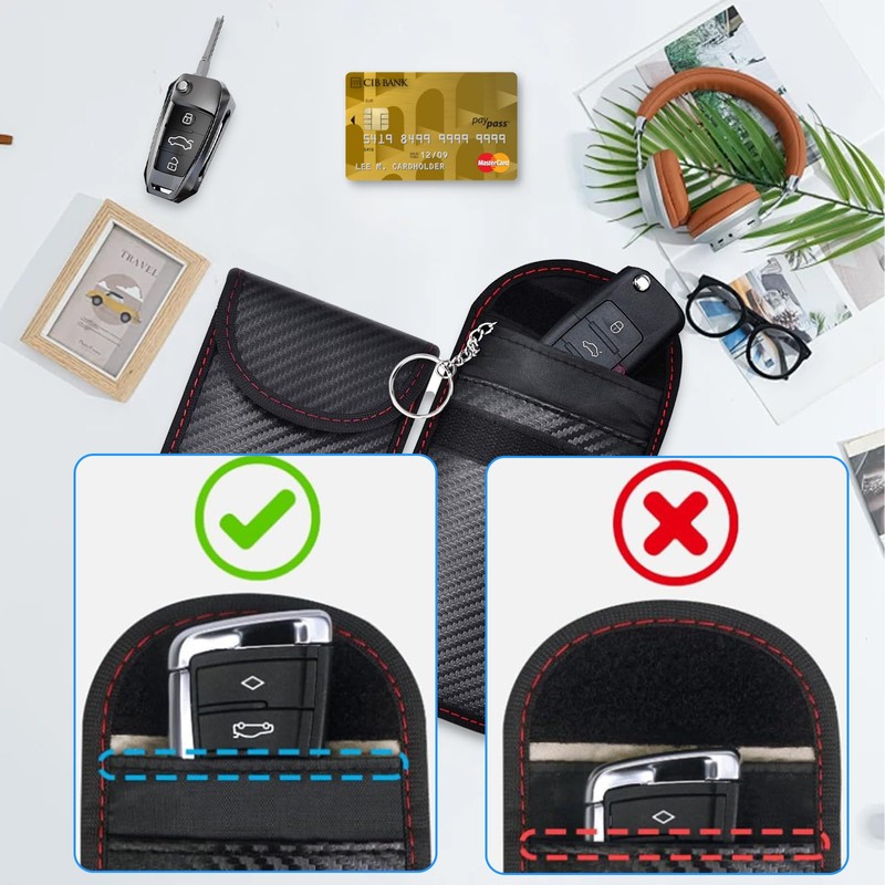 This 2-piece RFID car key protection bag is an ideal choice for enhancing car secure. Adopting advanced Faraday cage technology, it effectively shields wireless signals, preventing relay theft and unauthorized keyless access to the system. Each keychain protection bag is made of premium-quality materials and equipped with sturdy metal buckles and safety Velcro, providing both convenient access and reliable protection. Its stylish and compact design is suitable for most keychains while maintaining portability. Specially designed for modern vehicles with keyless entry, it can effectively resist RFID scanning and remote hacker attacks. Whether for daily use or travel, this set ensures the secure of your car keys and is an essential accessory to stop high-tech car theft.