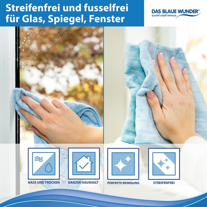 Das blaue Wunder Plus Cleaning Cloths 8 x 40 x 40 cm (Blue), Cleans, Dries and Polishes Microfibre Cleaning Cloth, Drying Cloth for Kitchen, Bathroom, Household, Car
