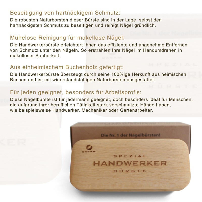DASAM® Hand Brush, Nail Brush, Fingernail Brush, Craftsman Brush, Brush, 100% Natural Bristles, Beech Wood, Made in Germany, Hand Wash Brush