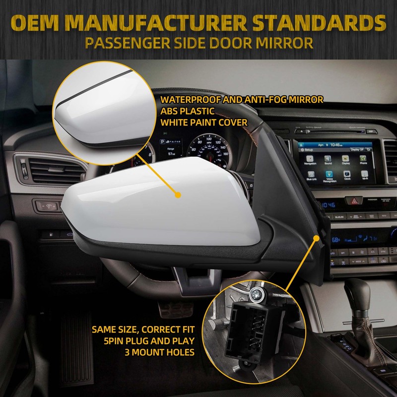 - 【Advantage】White Paint Cover, The Paint Color Is The Same As the Paint Color of The Original Cover; 5PINS, Plug And Play; The Mirror Doesn't Need Additional Modification, It Is a Complete Mirror Assembly