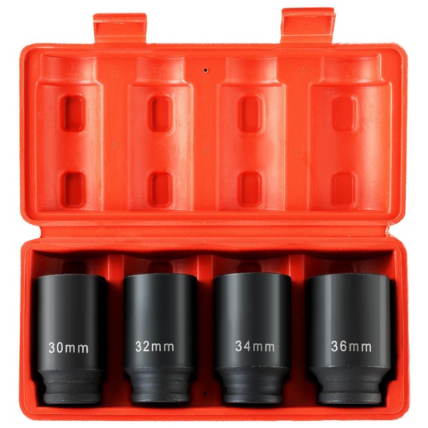 - Multiple Size Options: 4 PCS 1/2"drive deep axle nut impact sockets: 30mm, 32mm, 34mm, 36mm. Four socket of different sizes for you to choose from, you can always find what you need.
