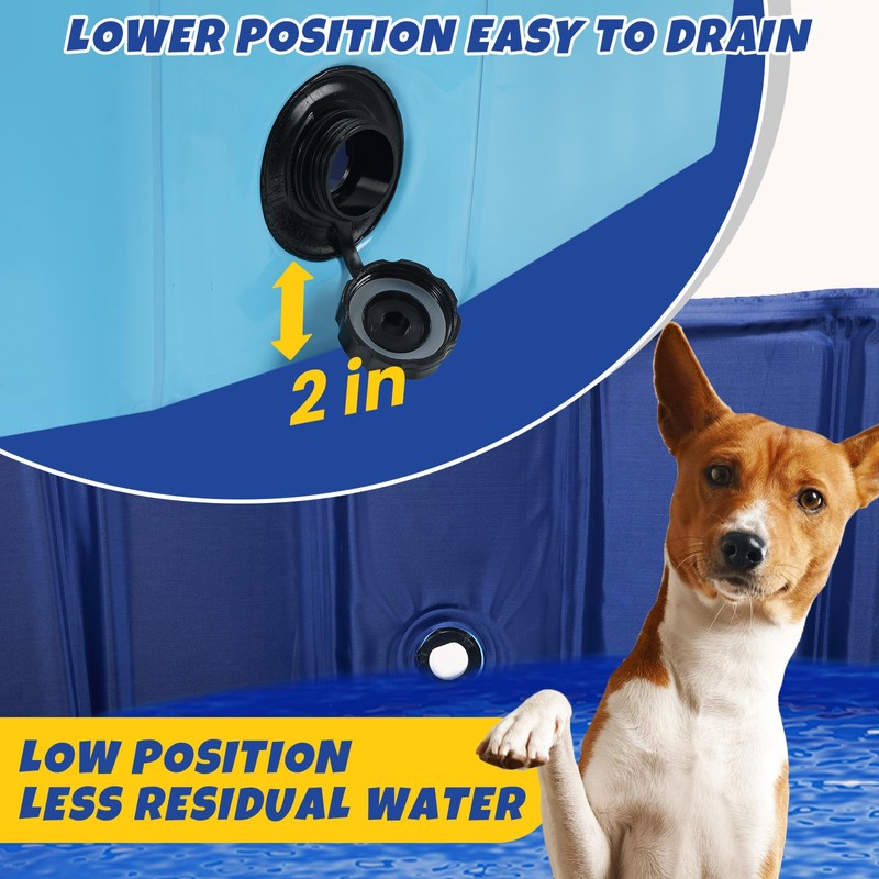 【Effortless Draining】 This pet pool features a side drainage system, which prevents the need to handle the drain switch while pets are playing.