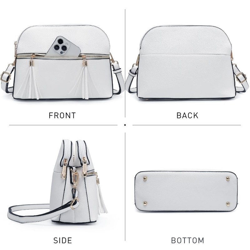 Dasein Women Tassel Zipper Pocket Crossbody Bag Shoulder Purse Fashion Travel Bag with Multi Pockets(1-White)