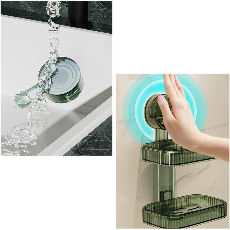 Dasellfa Soap Holder Shower Soap Holder Suction Cup Soap Dishes No Drilling with Drainage Suction Cup Soap Dishes for Bathroom Wall Mounting (Green 2-Layer)