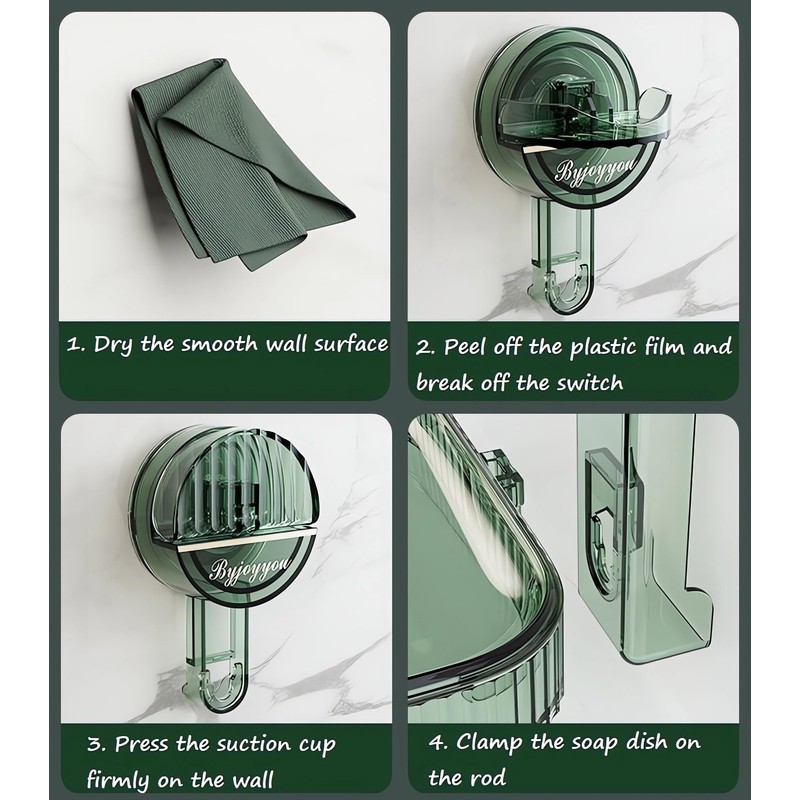 - Soap holder without drilling, easy installation: soap box no tools, no drilling, no screws, no damage to the wall. Place the suction cup in the desired place and press it firmly. Installs in 1 second.