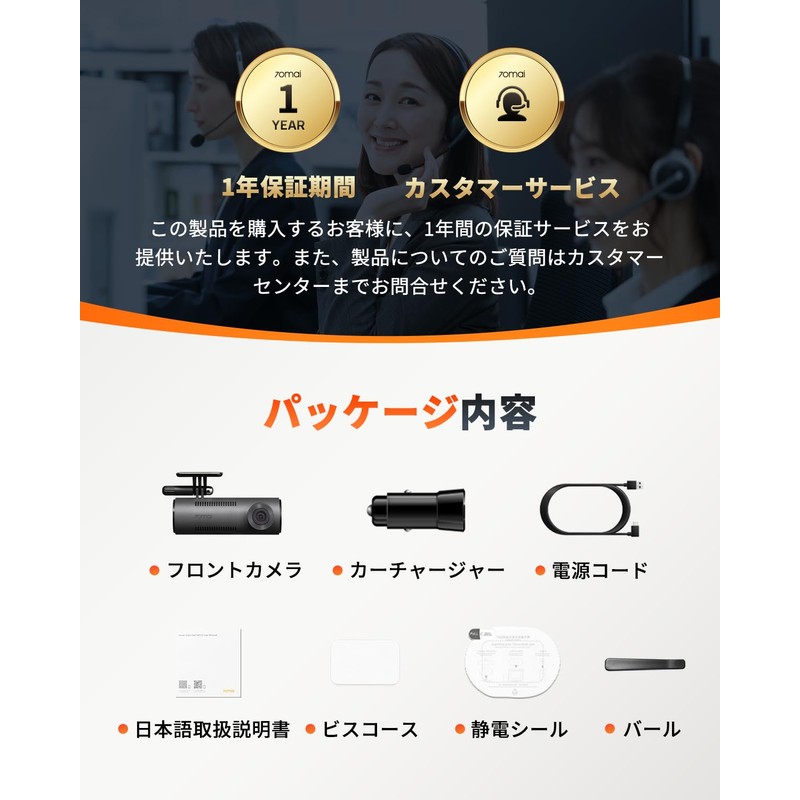 - [1 Year Product Warranty & Customer Service] We are the official seller of 70mai-JP With regards to the warranty period, the manufacturer warranty comes with 1 year from the date of purchase. Also, if you have any questions, please feel free to contact our customer center. Email: help_jp@70mai.com Phone: 050-5050-7958 (reception time 09:00 to 18:00)