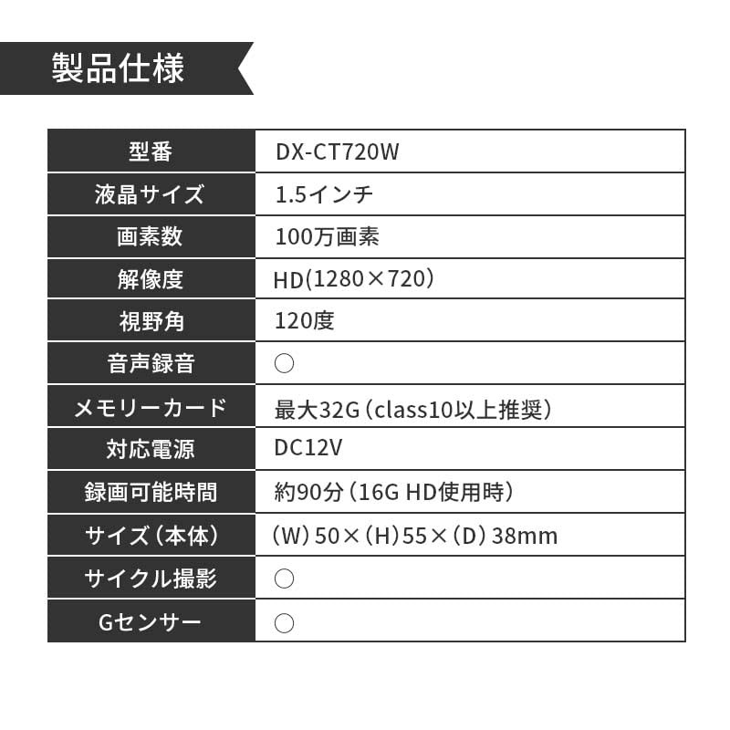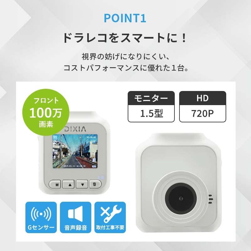 - [Features] Essential dash camera features G-sensor and voice recording. The simple function makes it easy to handle and the compact size makes it difficult to obstruct your view. You can also use it as a front and rear surveillance camera if you install it on 2 units. Recommended for those who install a dash camera for the first time