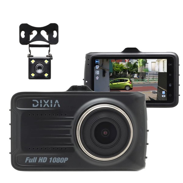 Dash Camera, Small, Front and Rear Camera, 2 Megapixels, Full HD, G-Sensor, Impact Sensor, Parking Surveillance, Continuous Recording, LCD Monitor, Easy Installation