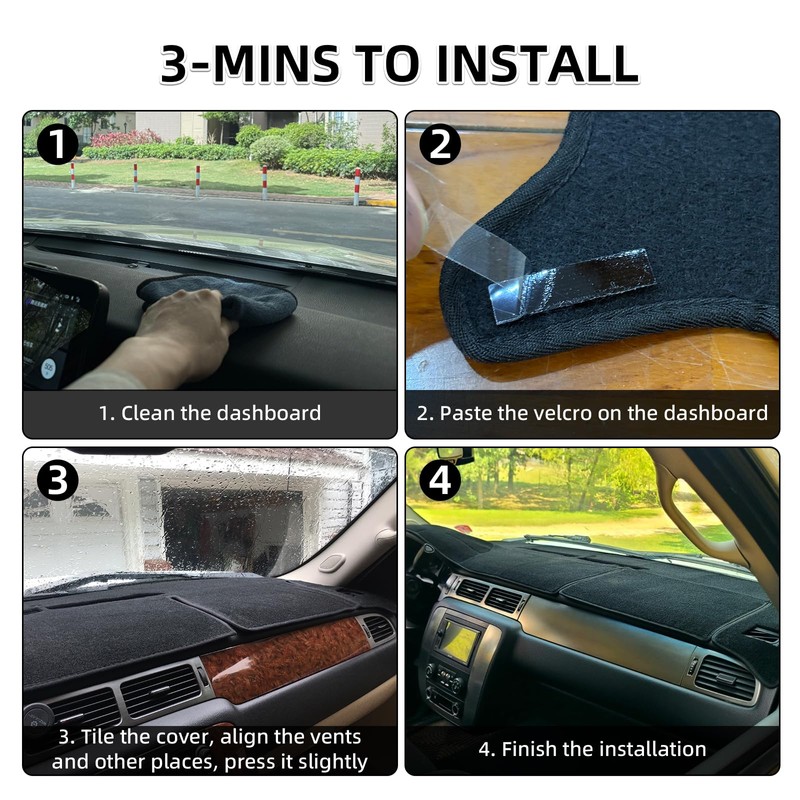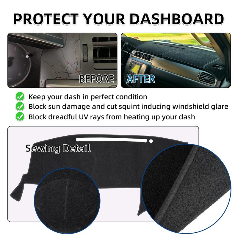- ☀EASY INSTALLATION: Car dash protector cover just need 0mins to install without any tools, velcro tabs help in place to eliminate slippage