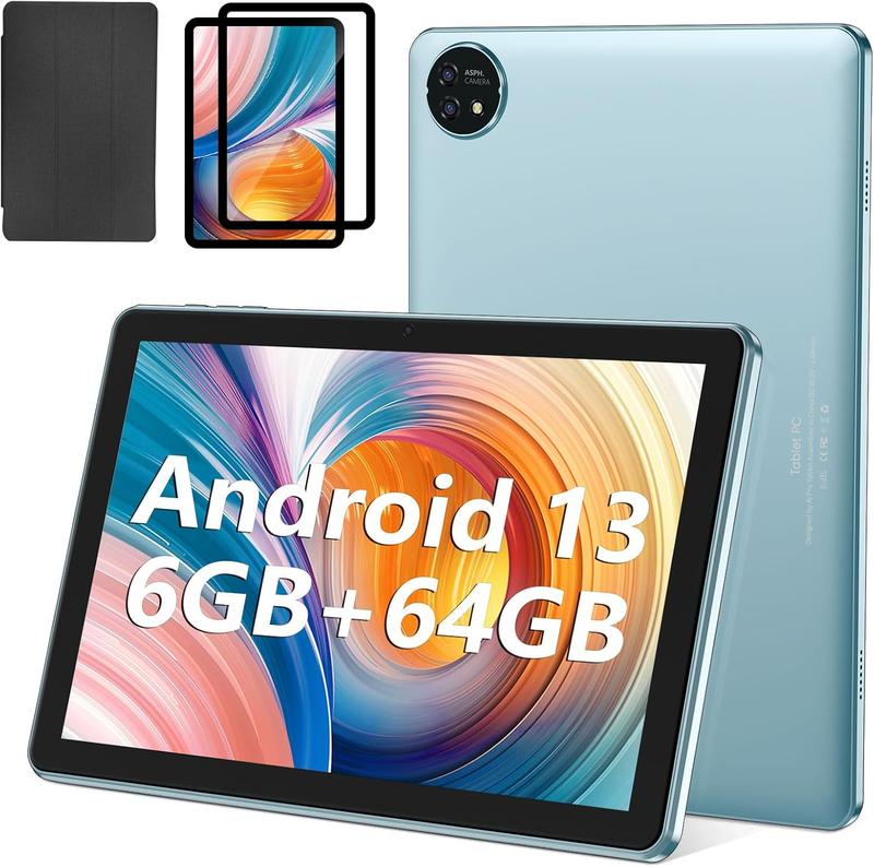 1【Powerful Processor and Faster Response】-Our 10.1-inch tablet comes with stable Android 13 with a high-speed processor that launches apps quickly and keeps your apps running smoothly.6GB of RAM and 64GB of ROM, along with an expandable microSD card slot of up to 512GB, as well as an expandable microSD card slot up to 512GB, let you store more apps, songs, videos and photos on your tablet.
