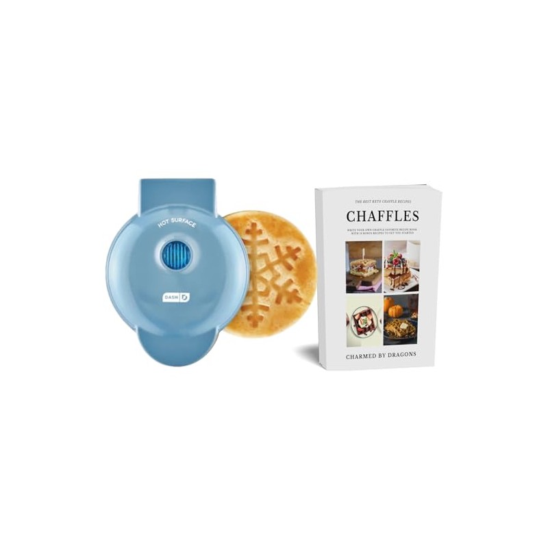 - DASH MINI WAFFLE IRON: 4 Inch Shimmering Blue SNOWFLAKE Dash Waffle Maker With The Best Keto Chaffle Recipes Book and Journal to Add Your Own Recipes