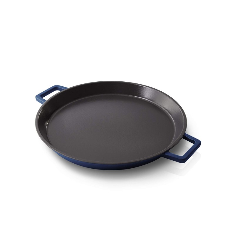 Zakarian by Dash 13 Inch Nonstick Cast Iron Dual Handle Pan, Titanium Ceramic Coated Frying Pan, Blue