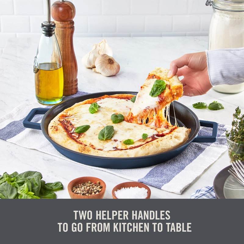 From Zakarian by Dash, this 13 Nonstick Cast Iron All-Purpose Pan brings restaurant-quality dishes to your home. The unique TruPro Titanium Ceramic Nonstick coating sets Zakarian by Dash cast iron cookware apart it never needs seasoning, food releases effortlessly, is rust-resistant and maintenance free, and is PFAS, PFOA, PTFE, lead and cadmium free. It is compatible with all cooking methods and creates a perfect sear up to 500F. The 13 All-Purpose Pan includes two handles for easy transport. This All-Purpose Pan is an essential for creative home cooks.