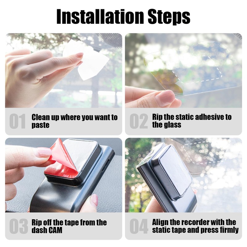 No drilling, no permanent glue, no mess—our static cling technology makes mounting your dash cam simple and residue-free. The reusable design means you can adjust or relocate your camera anytime without worrying about sticky leftovers or damage to your windshield.