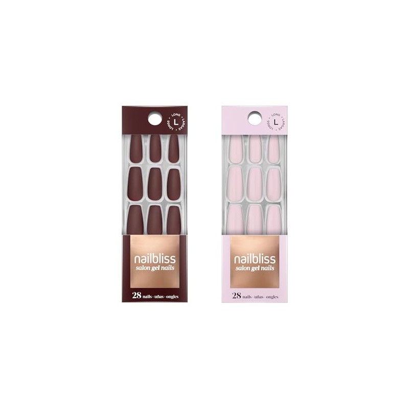 - Glue-On Gel Nails: Nailbliss professional glue-on gel nails by Dashing Diva provide a long-lasting, salon gel manicure