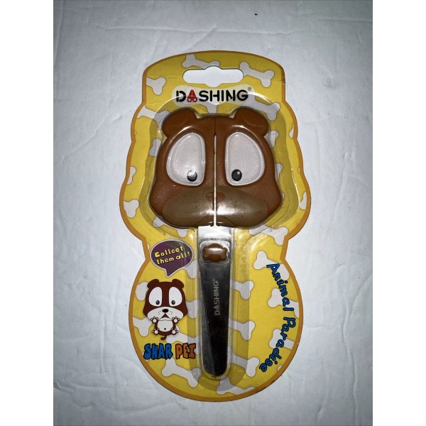 Add some fun to your child's school supplies with these adorable Dashing brand Kids Dog (Shar-Pei) Animal Shaped Scissors. Perfect for both boys and girls, these scissors feature a cute dog design that will make schoolwork more enjoyable. The sharp blades, accompanied by a comfortable grip, make these scissors perfect for all types of cutting needs.