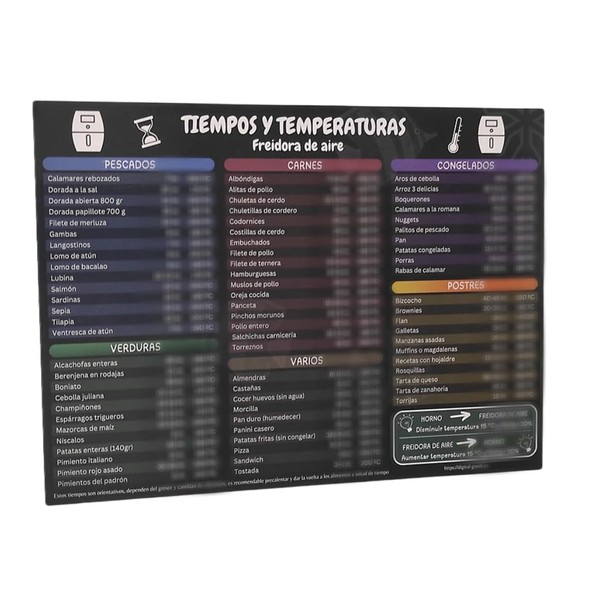Dashos Air Fryer Magnet with Time and Temperature Chart in Spanish