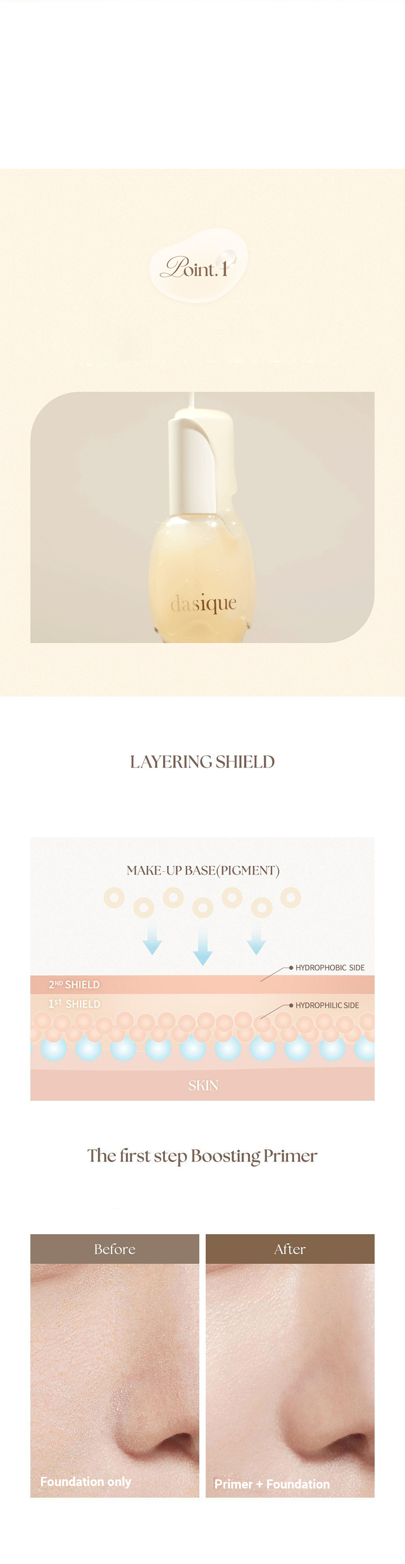 No.1 selling makeup product in Olive Young. Makeup boosting primer is the first product you should use for perfect base makeup. Actual reviews include that this is the best primer ever, it is an essential product for dry skin types, and it is a must-have item to remove flaky base makeup. Makeup boosting primer complete with vegan flower water essence for smooth skin texture. The first step primer to moisturize and clear your skin before makeup. The moisturizing essence thoroughly fills between skin to make dry skin into moisturizing and smooth skin texture. The moisture layer built from inside the skin provides better skin texture and protects skin against external environment. Provides smooth base makeup without flaking and creasing. Provides skin boosting effect for long-lasting moisture layer and smooth and glowing skin. A certified vegan product that acquired Italian V-label.