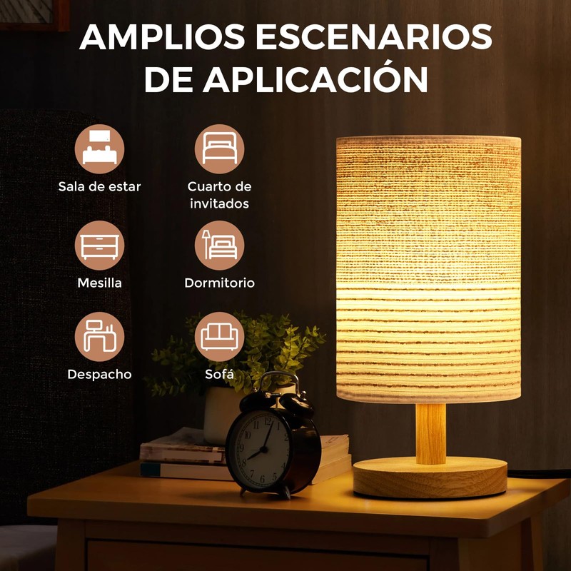 - BRILLO CÓMODO: Nuestra pequeña lámpara de escritorio crea una sensación agradable y reconfortante en la casa cuando pasa tiempo con su familia, ya que la pantalla de tela de lino suaviza la luz. La lámpara para mesita de noche no es regulable.