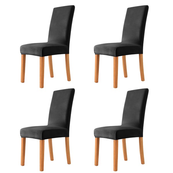 DASORY Velvet Chair Covers for Dining Room, Soft Stretch Seat Slipcover, Washable Removable Parsons Chair Protector, Set of 4,Balck