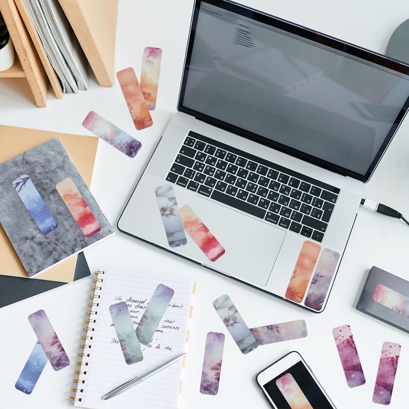 DASTTUIS 80 Pieces Calm Anxiety Sensory Stickers - Sensory Strips with 2 Textured Surface Adhesives - Fidget Stickers Office & Classroom Desk Must Haves for Adults Teens (Ink Landscape