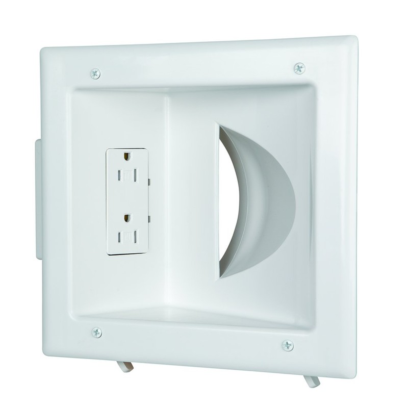 DATA COMM Electronic 45-0031-WH Recessed Low Voltage Media Wall Plate w/ Built-In Duplex Receptacle Outlet, Cable Management - Elevate Your Home Entertainment w/ Stylish White Panel
