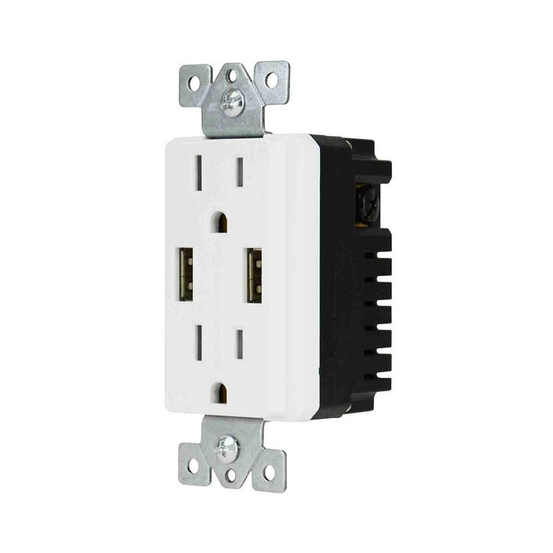 DATA COMM Electronics 48-0204-WH High-Speed Décor Duplex Receptacles Electrical Wall Outlet USB Ports 4.0A Fast Charge, White