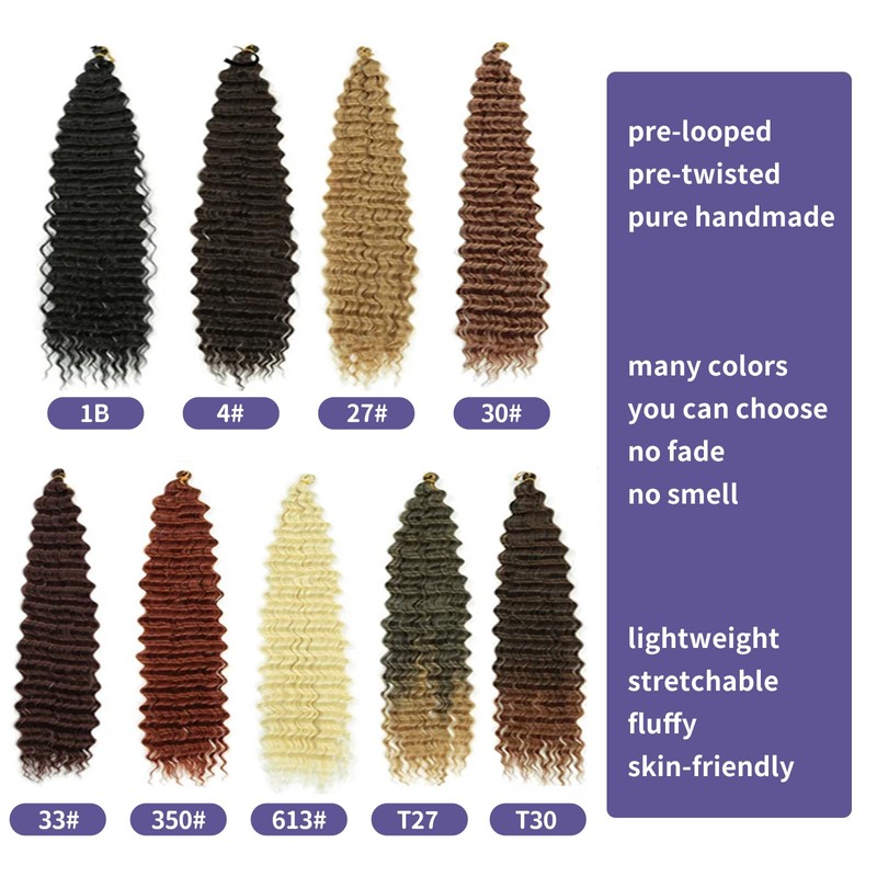 Datanala Ocean Wave Crochet Hair 24inch Deep Wave Curly Crochet Hair 1pack Deep Curly Braiding Hair Extensions Long Braids Deep wave Synthetic hair for Black Women (27#, 24Inch,Pack of 1)
