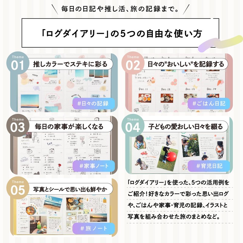 - A log diary that allows you to easily decorate your daily notebook with master and stickers