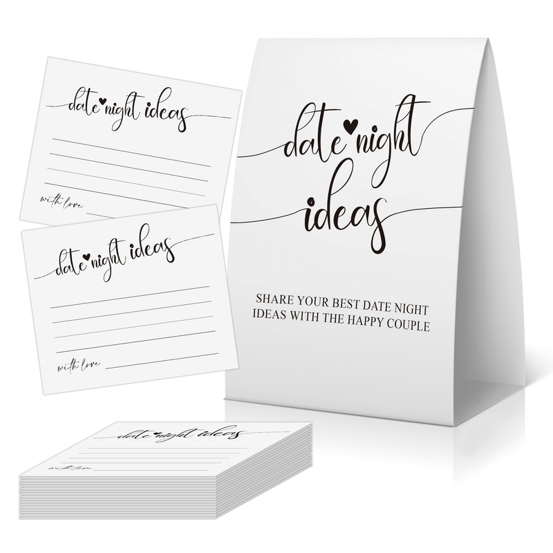 Date Night Ideas for Bridal Shower (One Sign with 50 Ideas Cards),Bridal Shower Games 50 Guests, Minimalist Bridal Shower Sign, Date Night Ideas Game for Wedding -DN05