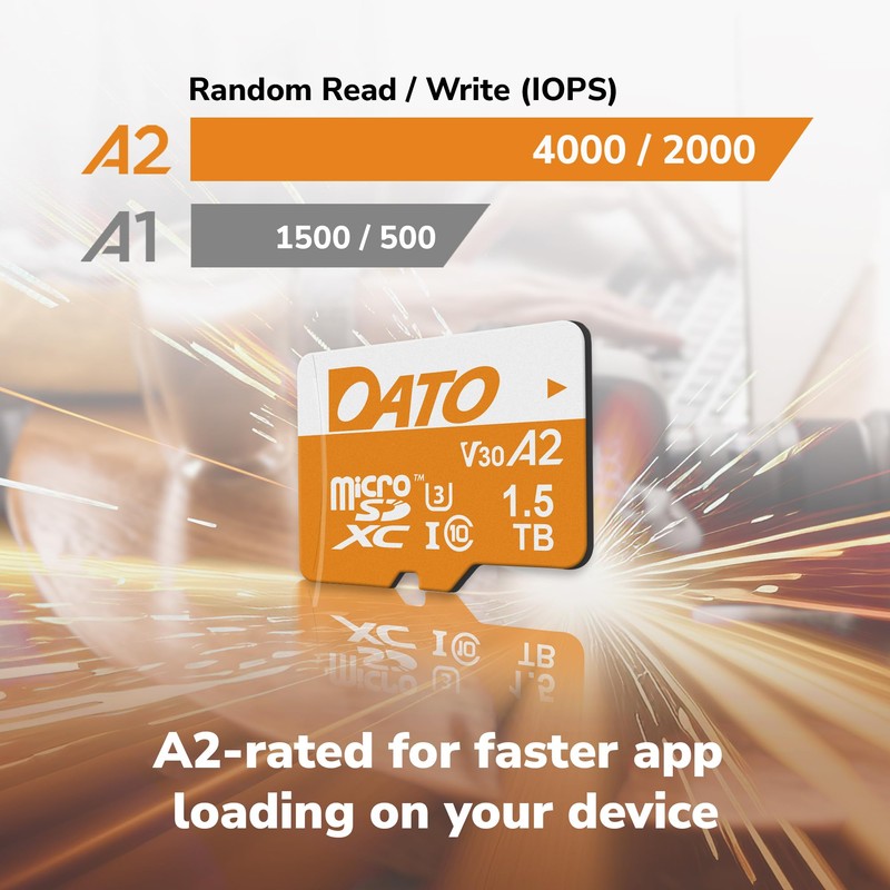 DATO DATO 256GB Advance Plus microSDXC Memory Card, UHS-I, C10, U3, V30, A2, 4K UHD, Up to 160/150 MB/s, for Mobile Phones, Tablets, Gaming Consoles, Cameras, Drones, and Professional Equipment