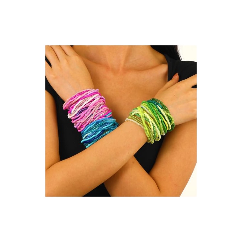 DATOA 17/30Pcs Bohemian Elastic Beaded Bracelet Colorful Stackable Multilayer Seed Beaded Bracelet Handmade Beach Jewelry for Women-30Pcs Green