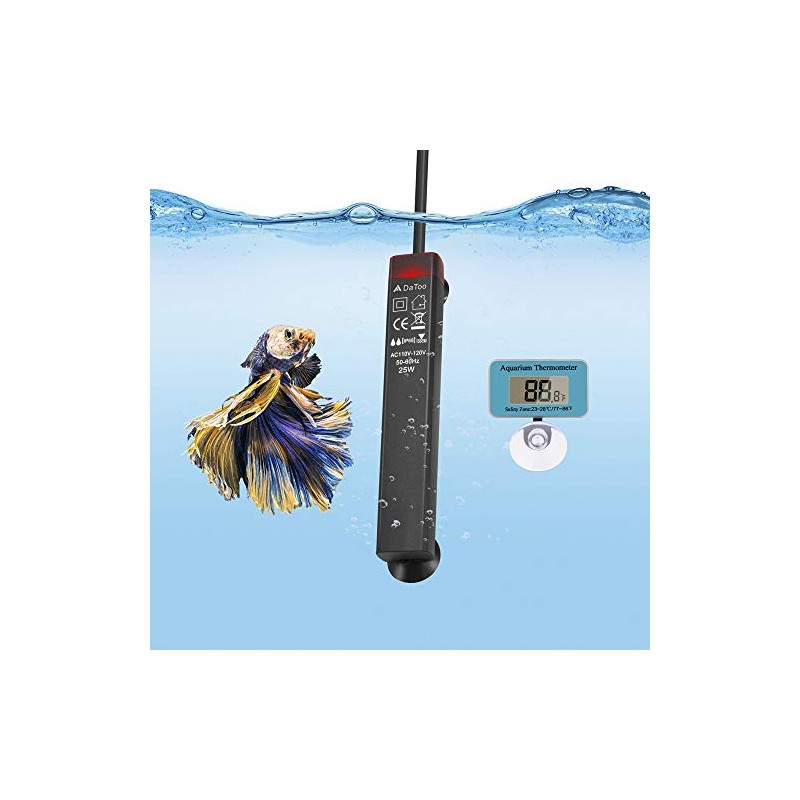 DaToo 25W Mini Aquarium Heater Betta Small Fish Tank Heater Submersible 3 to 5 Gallon, 1 Yr Warranty
