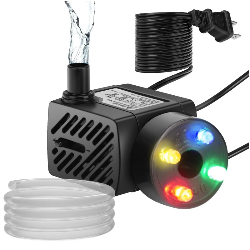 Datoo Mini Submersible Fountain Water Pump With LED Light 50GPH 3W Small Ultra Quie