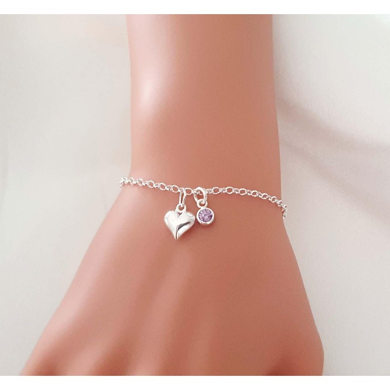 - Stunning puffy heart on a sterling silver 925 link chain, in sizes: 15cm & 17cm. Includes a pretty crystal birthstone in the birth month colour of your choice. The stones are crystal and represent the stone colour for each month.